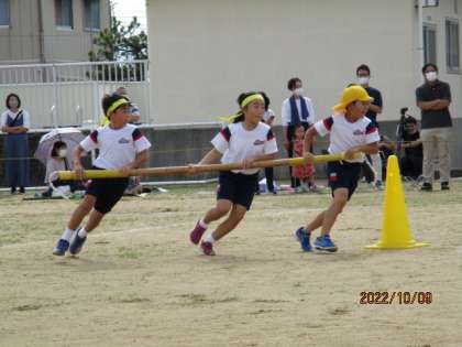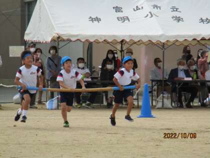 3,4年生「神明タイフーン」3人で息を合わせて、上手に回りました。