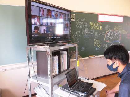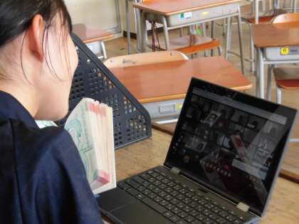家庭でクロームブックを使い、Meetを立ち上げて学習ができるか、確認しました。名前を呼ばれたら返事をしたり、クイズに答えたりしていました。保護者の方のご協力、ありがとうございました。