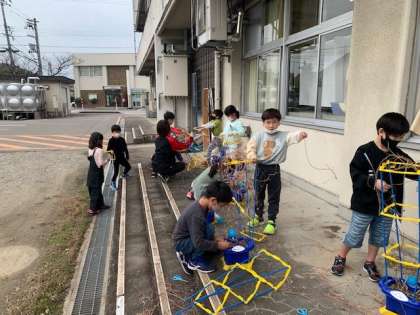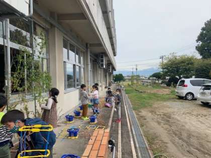 1年生が育てたアサガオのつるをとりました。1学期から、心をこめて育ててきたアサガオのつるで、これからはリースを作ります。先日、五福公園でとってきたドングリや葉等をつけて、作品を作ります!