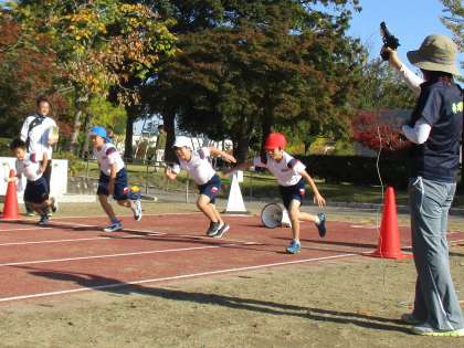 秋晴れの下、五福陸上競技場サブグラウンドでの記録会に参加しました。5月の記録を更新しようと、全力で走った3年生でした。