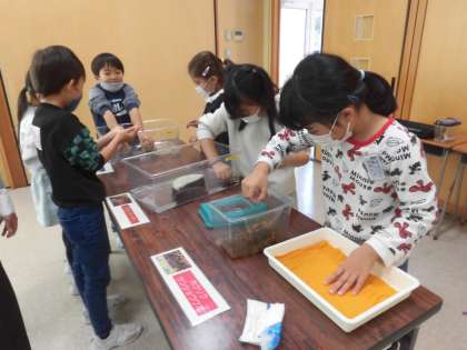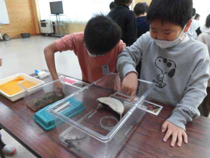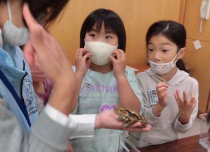 ヒキガエル、アカハライモリ、アオダイショウ等、たくさんの生き物に触れ合いました。