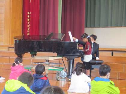 2年生からは、「にじ」のピアノ演奏の発表がありました。とても素敵な演奏が体育館いっぱいに響き渡りました。
