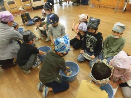ぞうきんやほうき等の掃除道具の使い方を教えていただきました。