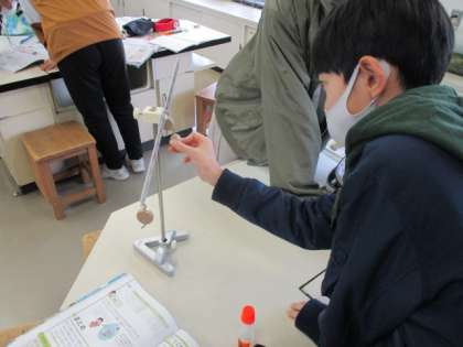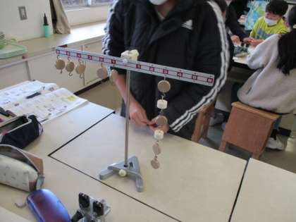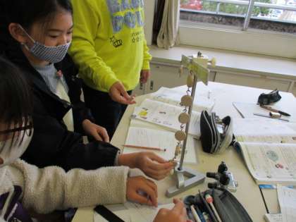 今日はてこが水平につりあう場合について自分の予想をたてて、実験しました。