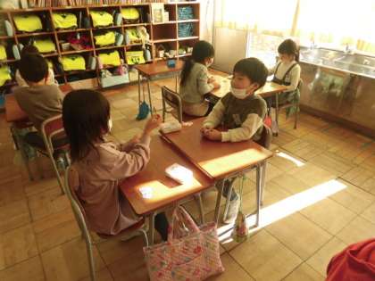 ひき算カードを使って、ひき算の練習をしました。友達と問題を出し合って、楽しく問題を解き合いました。