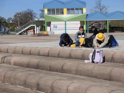 5年 校外学習2 公開日 2021/11/29 更新日 2021/11/29 5年生 越ノ潟発着場から徒歩で、海王丸パークへ! 海王丸パークからの景色をスケッチして ぽかぽかの中で、「おいしいお弁当」を食べました!