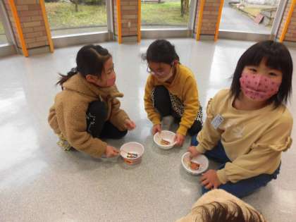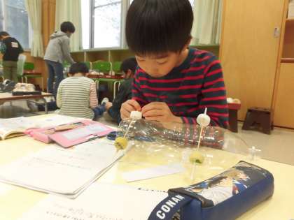 2年生 うごくおもちゃパワーアップ大作戦 公開日 2021/12/08 更新日 2021/12/08 2年生 1枚目の写真は、授業の初めに、おもちゃの作り方や動かし方について気付いたことや困っていることを伝え合っているところです。自分の願うおもちゃに近づけるために、たくさん試行錯誤をしながら作っていました。おもちゃが完成した後は、自分たちで、楽しい遊び方を考えて、実践していました。 保護者の皆様、たくさんの材料集めにご協力いただき、ありがとうございました。