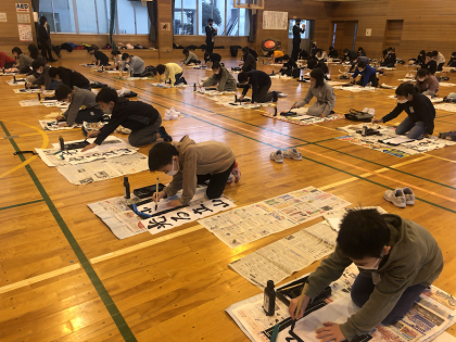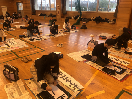 4年生 書初大会 公開日 2022/01/11 更新日 2022/01/11 4年生 今日は、始業式のあと、書初大会を行いました。 集中して一画一画に思いを込めながら、丁寧に書いていました。 すてきな作品が仕上がりましたね♪ 3学期も自分の力を高められるように、目標をもってみんなでがんばっていきましょう!