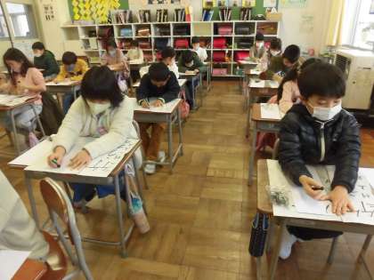 2年生 3学期スタート! 公開日 2022/01/11 更新日 2022/01/11 2年生 いよいよ3学期が始まりました。少し長い冬休みでしたが、2年生全員が元気に登校できたことを嬉しく思いました。始業式の後には、校内書初大会がありました。金賞を目指して、集中して取り組むことができました。