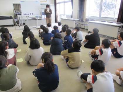 発育測定の前に、保健の臼田先生から近視について教えていただきました。クロムブックを使って学習することが、これから増えていきます。適度に目を休め、自分の目の健康を守っていきましょう!