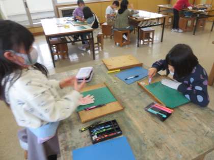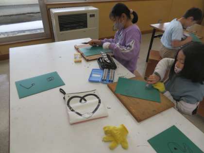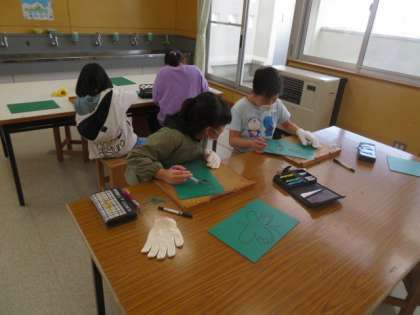 3年 彫刻刀で版画にちょうせん 公開日 2022/02/04 更新日 2022/02/04 3年生 3年生では図画工作科の時間に版画に取り組んでいます。はじめて彫刻刀を使うので、最初はうまく彫ることができませんでしたが、馴れてくると、細かな部分まで上手に彫ることができました。