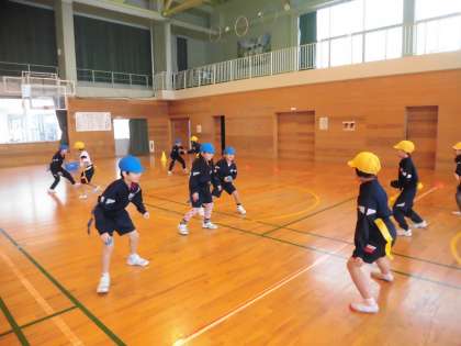 体育の時間に、宝運びゲームをしています。今日からリーグ戦が始まりました。作戦を考えながら、得点アップをめざして活動しています。