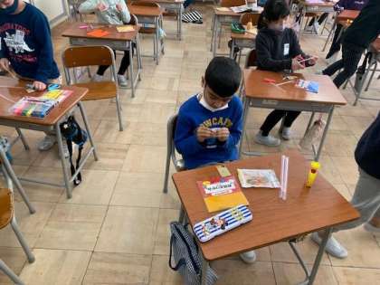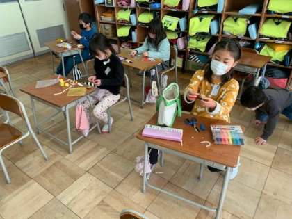 図工の時間には「すきまちゃんの好きなすきま」と題して、すきまちゃんを作っています。モールやストローで足をつくって、いろいろなすきまちゃんができました。次回は、隙間ちゃんをChrome bookで撮影します。