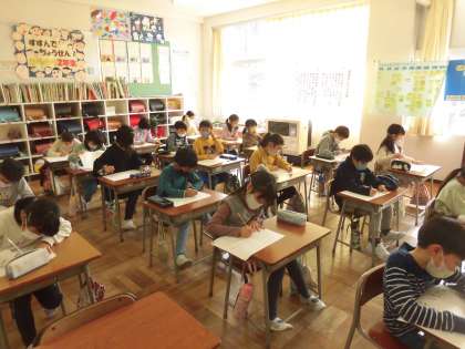 真剣に取り組むことができました。テストに向けて、自学ノートやクロームブックを使って、進んでテスト勉強を頑張った人がたくさんいました。