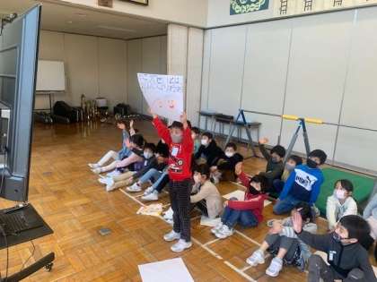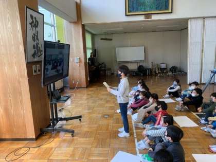 今日は、zoomを活用して、神明こども園の子供たちとの交流会を行いました。