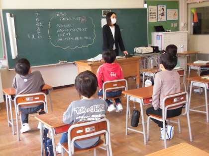 2年生の教室では、新しい担任の先生と目をつなぎ、しっかり話を聞いている姿が観られました。