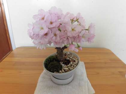6年生の教室入り口に飾られた盆栽桜が満開となり、最高学年として頑張ろうという6年生の意気込みが伝わってきました。