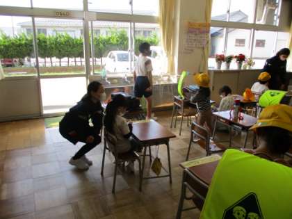 自主的に1年生のお世話をしに行っています。