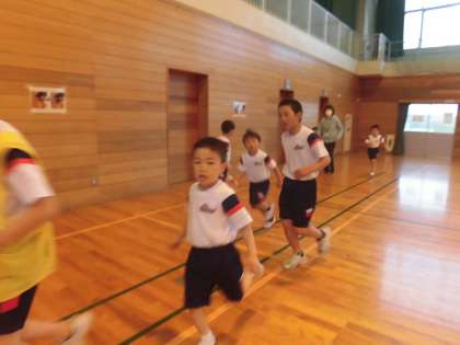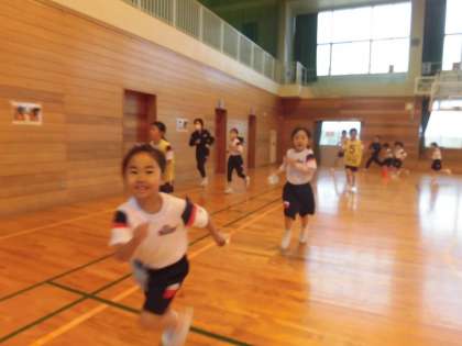 今日は、体育館で朝のトレーニングをしました。6年生と一緒に頑張って走りました!