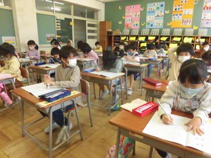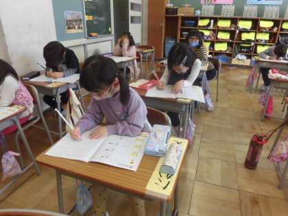 お手本を見ながら、自分の名前を書く練習をしました。みんな集中して、丁寧にかくことができました。