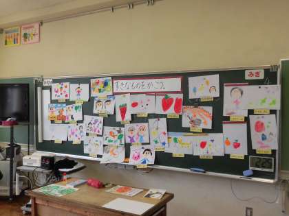 図画工作科の時間に、「すきな○○をかこう」というテーマで絵を描きました。素敵な絵がたくさんできあがりました!