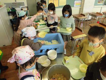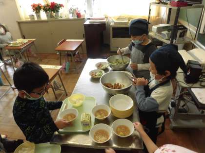 落ち着いて準備をしています。今週から新しい当番の人に変わりました。みんな張り切っています。