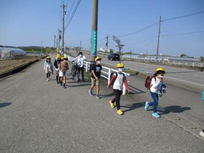 今週は「下校指導週間」として、教員が付き添って下校しています。「適切な横断歩道の渡り方」「一列歩行」「元気なあいさつ」ができるように、指導しています。6年生が、率先してよい姿を見せてくれて頼もしいです。