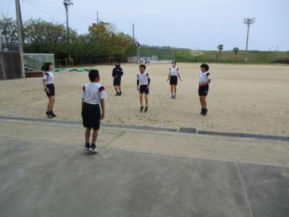 今日は新色団で体育を行いました。