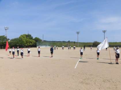 高学年で、開会式や閉会式の練習をしました。整列や移動の仕方等を確認しました。次回は、全学年がそろって練習をします。高学年として、今日練習したことをしっかりと伝えることができるとよいですね。