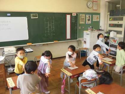 元気いっぱいに、団結コールをすることができました。運動会が楽しみです。(上:白団、下:赤団)