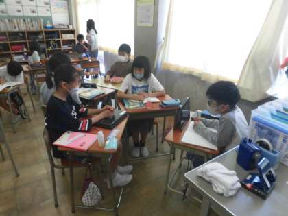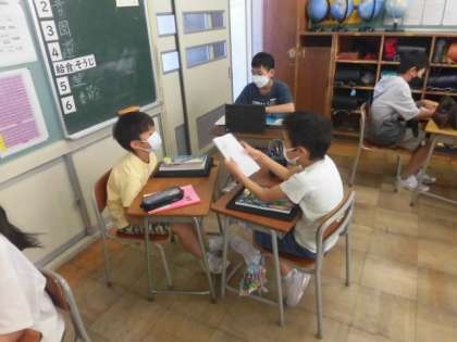 国語の学習では、友達にインタビューをする学習をしています。言葉遣いや質問内容、視線等に気を付けて、質問できました。