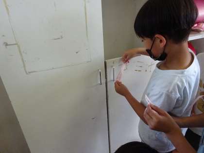 2年生 長さしらべ 公開日 2022/05/21 更新日 2022/05/21 2年生 算数科で、長さの表し方とものさしの使い方を学習しました。教室にある10センチメートルの長さのものをものさしを使って一生懸命探す子供たち。正しくものさしを使って長さを調べることができました。