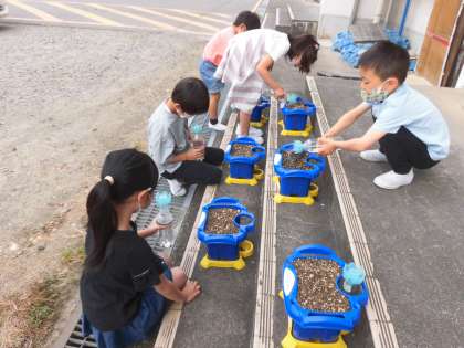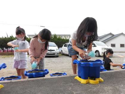 先日植えたアサガオを、ベランダで育てています。子供たちは、芽が出ることを楽しみに、水やりを続けています。