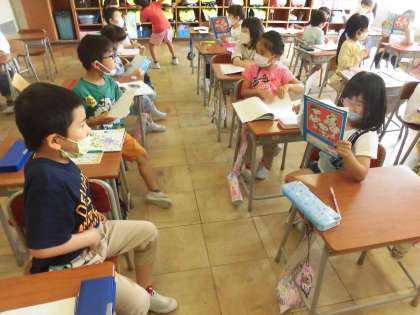 国語の時間には、説明文「くちばし」を読んでいます。今日は、文に出てきたくちばし中から、いちばん驚いたくちばしを選び、そのわけを友達に話しました。