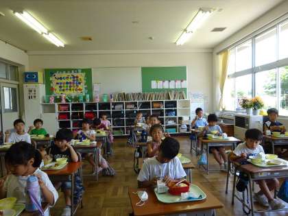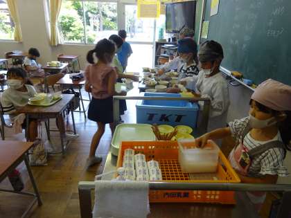 今日の給食は、揚げ魚のレモン味、とろろ昆布和え、なすの味噌汁、ご飯でした。夏の暑い季節にレモンのさっぱりとした味が気に入った子ども達。暑さに負けず、もりもり食べて元気に過ごして行きたいですね。