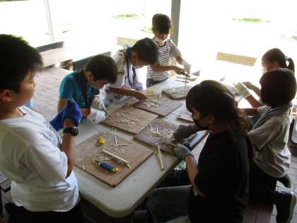 竹のはしづくりの様子です。わざわざ凍らせてくださった竹を使うことで、初めての子供たちも削りやすくなっていました。片付けも最後までがんばりました。