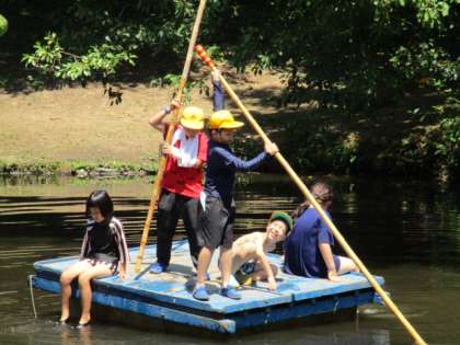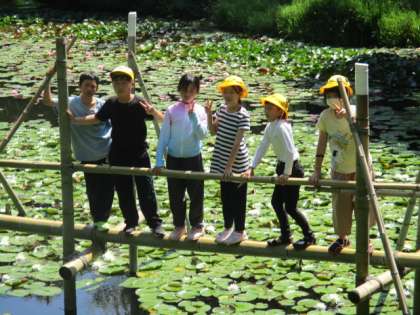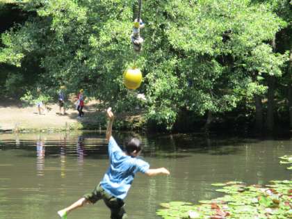 池遊びの様子です。勇気をもって、思い切り飛び込む子供たちがたくさんいました。