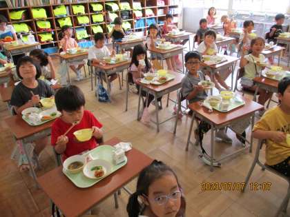 今日は、1年生にとって初めての選択献立でした。子供は、朝から教室に掲示してある盛りつけ表を見ながら、給食時間を楽しみにしていました。