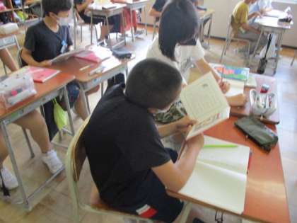読むたびに「テーマが分からなくなってくる」「むずかしい」「でも、題名が〜だよ?」など、深まりのある話し合いを行っていました。