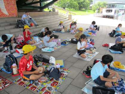 みんなが楽しみにしていたお弁当の時間です。ふたを開けた瞬間、みんな笑顔があふれていました。