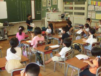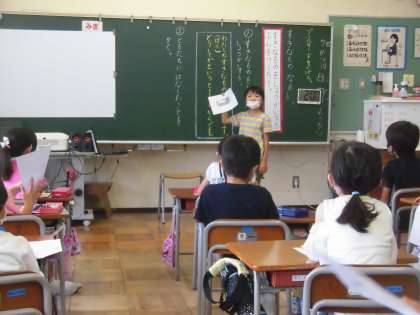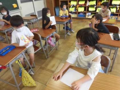 友達に自分の好きな物を伝えました。よく伝わるように絵を見せながら伝えています。