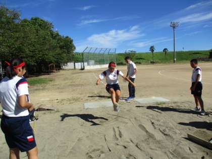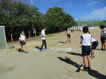 6年生は、今週の金曜日に控えた富山市チャレンジ陸上記録会に向けて、走り幅跳びとソフトボール投げの練習をしています。