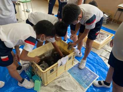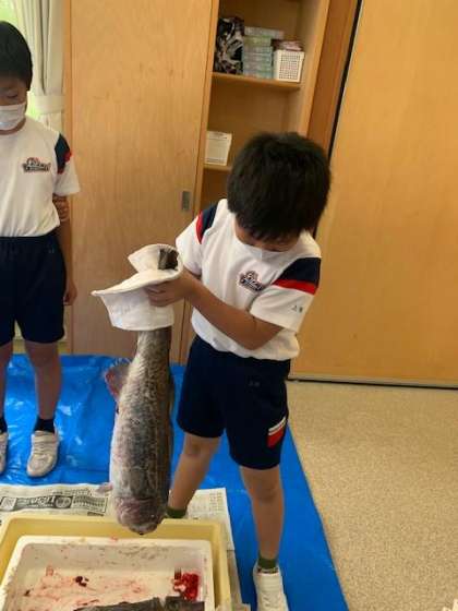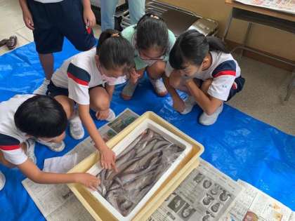今日は、富山湾の魚の学習会を行いました。実際にブリやゲンゲ、タラ等の富山湾産の魚を持ってきていただきました。持ったり触ったりして、魚の大きさを体感しました。社会科では、これからも水産業についての学習を続けていきます。たくさん調べていきましょう。