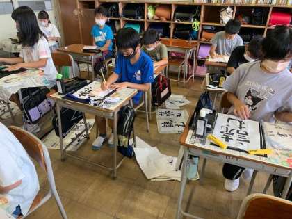 書写の時間に、太さや字の大きさに気を付けながら「読む」を書きました。前回の練習に比べると、とても上手く書くことができています。