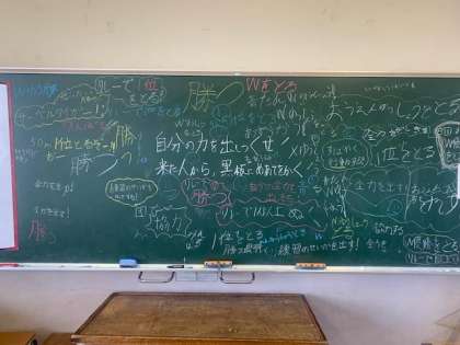 運動会の日の朝、子供たちが黒板に意気込みを書きました。