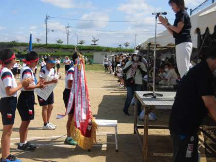また、総合優勝や応援の表彰も行いました。今年の総合優勝は青団、応援優勝も青団でした。どの団も、今までの練習の成果を十分に発揮していました。