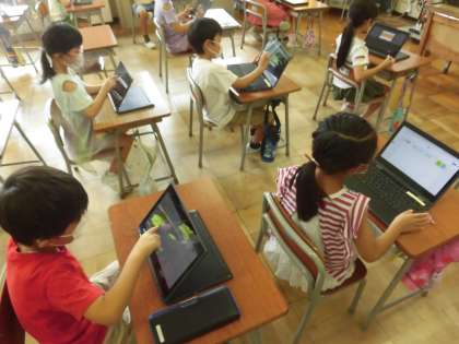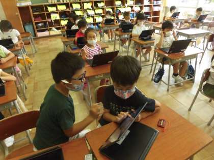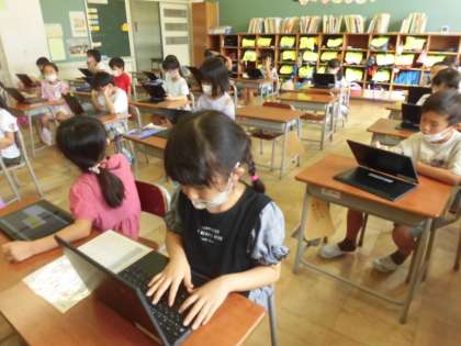 クロームブックを使って言葉あつめをしました。操作の仕方にも慣れて、たくさん言葉を書き込むことができました。