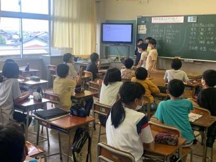 帰りの会では、動物クイズ係の子供たちが、動物のクイズを出してくれました。スライドを活用して、クイズを出題しています。みんなで楽しい時間を過ごすことができました。