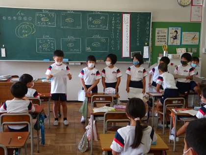 2年生 言葉の仲間分けゲーム 公開日 2022/09/14 更新日 2022/09/14 2年生 国語科で言葉の仲間分けゲームをしました。グループで問題づくりをしたり、個人で考えた問題をみんなの前で発表したりしました。子供達の中には、「スズキ、ブリは、何の仲間でしょう。」という問題を出した子がいました(正解は、「出生魚」)。子供達は楽しみながら、言葉の仲間分けについて詳しく知ることができました。