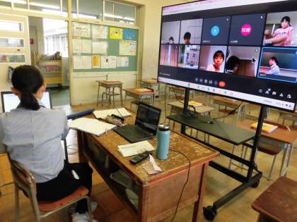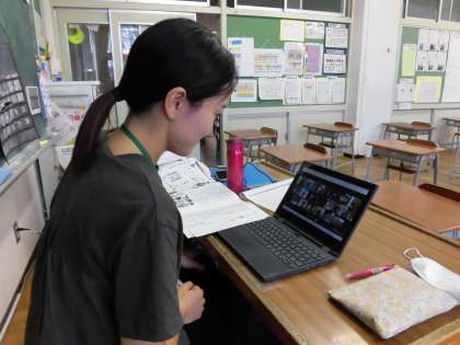 台風通過に伴う大雨と強風の予報が出ていたため、今日は臨時休業になり、2年生以上の子供たちは、Meetで簡単な学習を行いました。